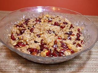 U provrelu vodu dodati ovsene pahuljice pa na tiho kuvati 5 min.uz mešanje ili dok pahuljice ne nabubre. Skloniti sa vatre, prohladiti pa dodati mešavinu soli, suvih brusnica, cimeta, seckanog pečenog lešnika/badema, pečenog susama, otopljenog meda i vanilin šećera. Dobro sjediniti, rasporediti u 2 činijice pa rashladiti.